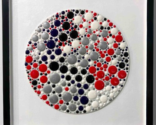 Round in black red and grey