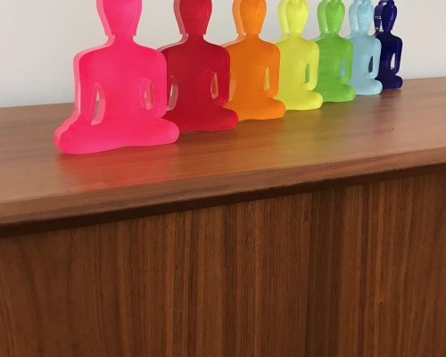 7 pieces of laser cut plexiglas sculptures, hand painted with acrylic colors